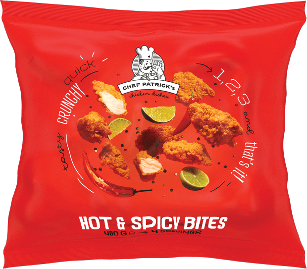 Μπούτι κοτόπουλο 56%, αλεύρι σίτου, νερό, φυτικό έλαιο (κραμβέλαιο), άμυλο σίτου, τροποποιημένο άμυλο πατάτας, άμυλο ρυζιού, αρωματικές ύλες, αλάτι, διογκωτικά αρτοποιίας (διφωσφορικά άλατα, ανθρακικά άλατα νατρίου), αποξηραμένη ρίγανη, εκχύλισμα καρυκευμάτων, ζάχαρη, άμυλο πατάτας, χρωστική ουσία (εκχύλισμα πάπρικας), αποξηραμένα λαχανικά (κρεμμύδι, σκόρδο), καρυκεύματα (κύμινο, μαύρο πιπέρι, δάφνη) .