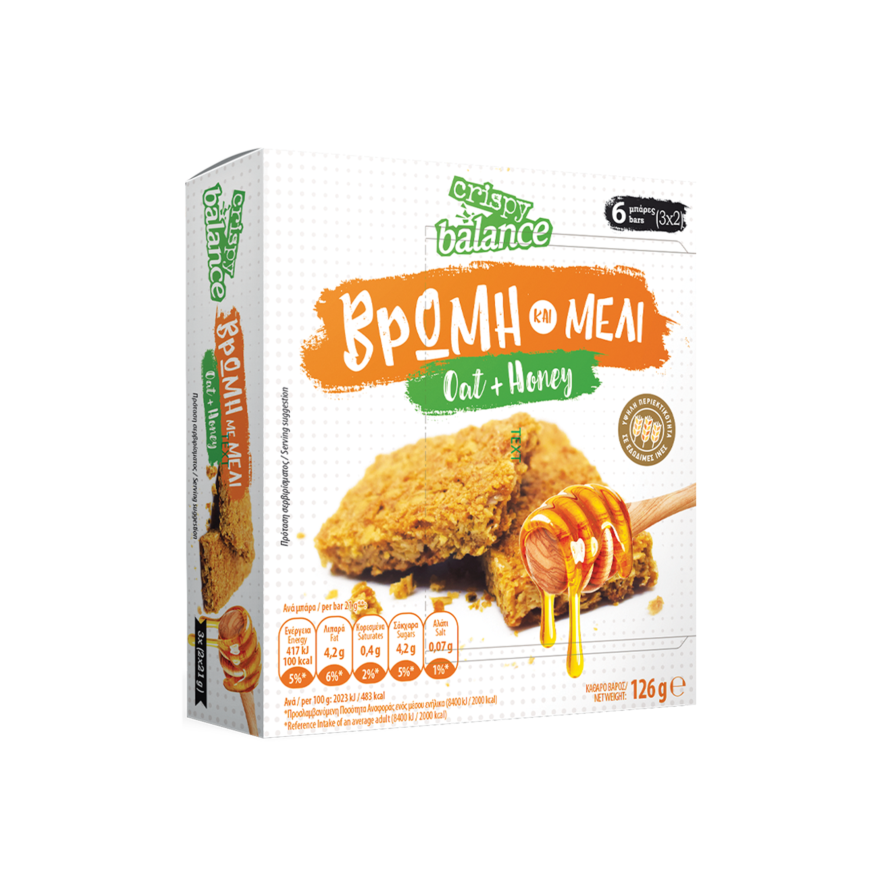 Bρώμη 56% (νιφάδες βρώμης, πλιγούρι βρώμης), φυτικό έλαιο (ηλιέλαιο), ζάχαρη, μαλτοδεξτρίνη, νερό, μέλι 3,5%, άλευρο σίτου, σιρόπι σακχαρόζης, γαλακτωματοποιητής (λεκιθίνη ηλίανθου), αλάτι.