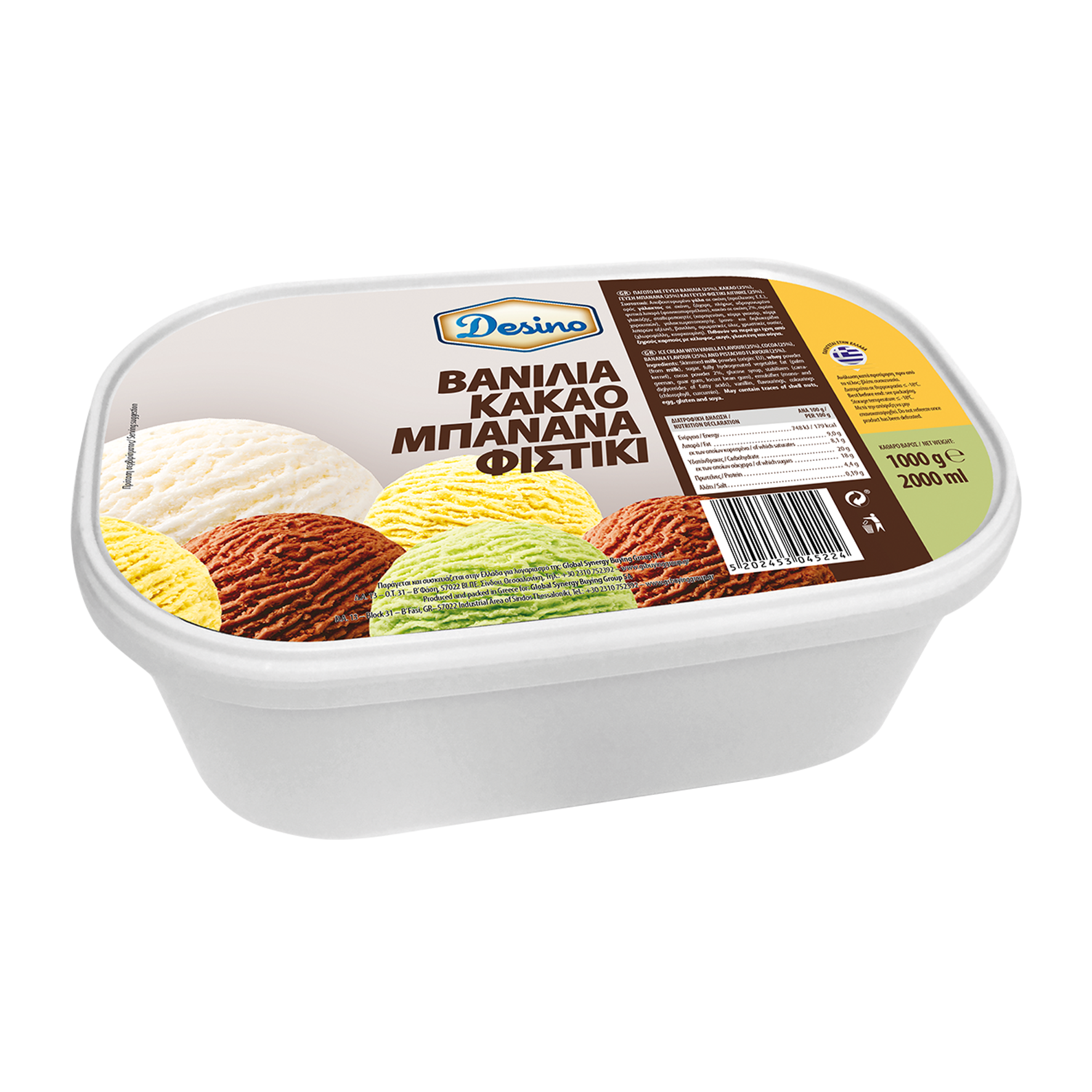 Αποβουτυρωμένο γάλα σε σκόνη, ορός γάλακτος σε σκόνη, ζάχαρη, πλήρως υδρογονωμένα φυτικά λιπαρά (φοινικοπυρηνέλαιο), κακάο σε σκόνη 2%, σιρόπι γλυκόζης, σταθεροποιητές (καραγενάνη, κόμμι γκουάρ, κόμμι χαρουπιών), γαλακτωματοποιητής (μονο- και διγλυκερίδια λιπαρών οξέων), βανιλίνη, αρωματικές ύλες, χρωστικές ουσίες (χλωροφύλλη, κουρκουμίνη).