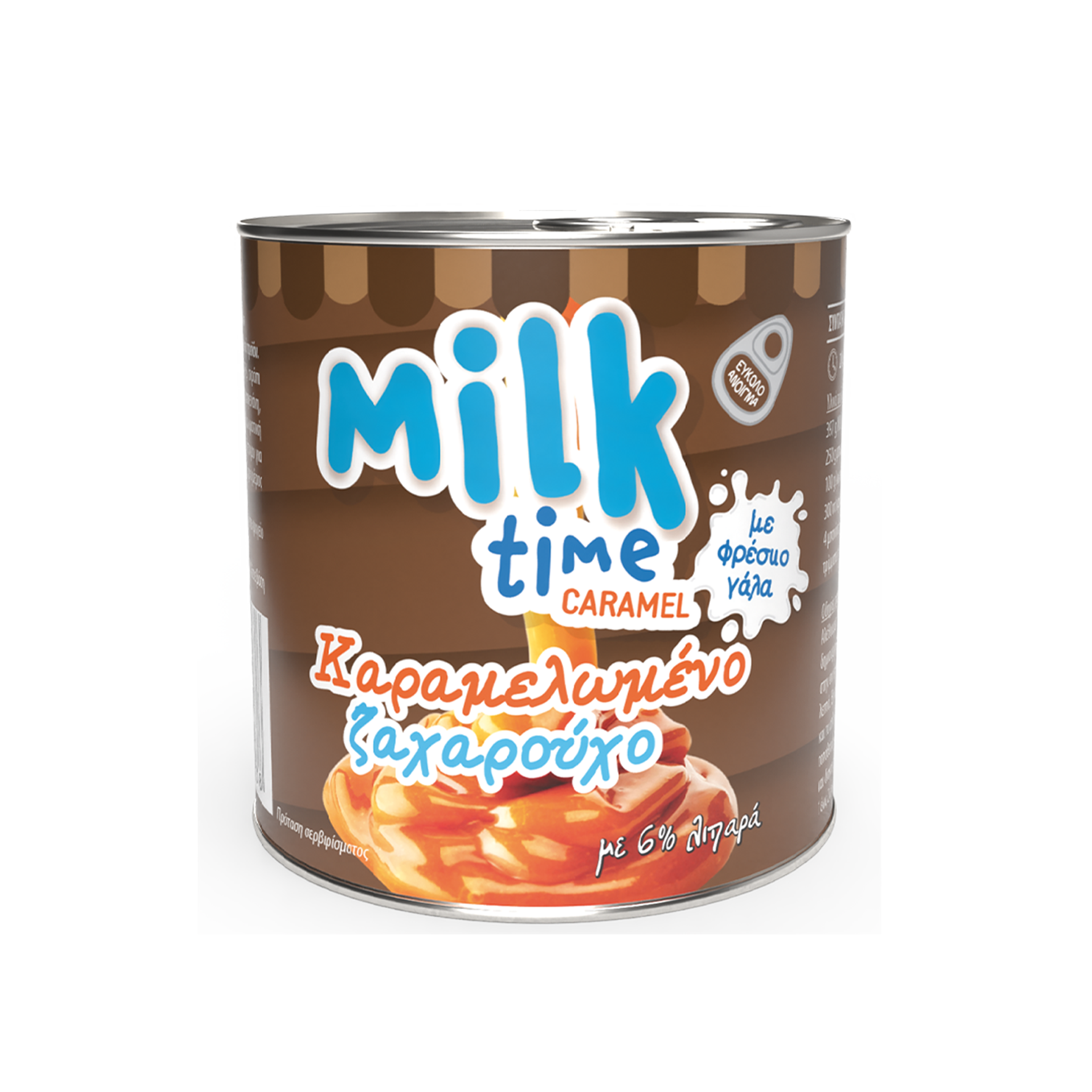 Παστεριωμένο αγελαδινό γάλα 52%, ζάχαρη 45%, σιρόπι γλυκόζης, σταθεροποιητές (καραγενάνη, φωσφορικό νάτριο, κιτρικό κάλιο), αρωματική ύλη (βανιλίνη).