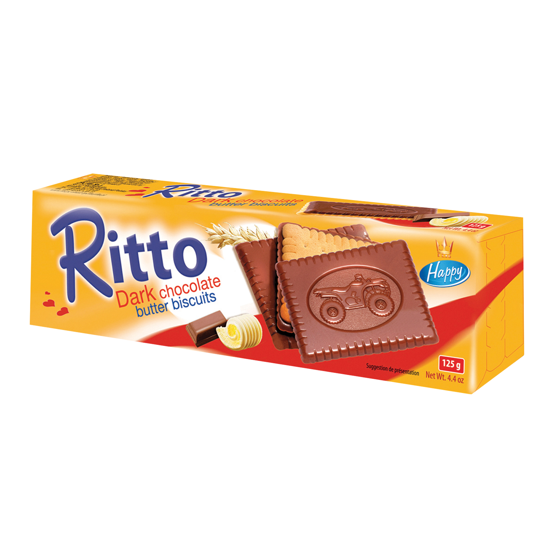 Σοκολάτα 60% [ζάχαρη, κακαόμαζα, βούτυρο κακάο, φυτικά λιπαρά (φοινικέλαιο), γαλακτωματοποιητές (λεκιθίνη ελαιοκράμβης, πολυγλυκερίδια του πολυρικινελαϊκού οξέος), αρωματική ύλη], μπισκότο 40% [αλεύρι σίτου, ζάχαρη, φυτικό έλαιο (ηλιέλαιο), ιμβερτοποιημένο σιρόπι ζάχαρης, βούτυρο γάλακτος 3,5%, διογκωτικά αρτοποιίας (ανθρακικά άλατα αμμωνίου, ανθρακικά άλατα νατρίου), αλάτι, ορός γάλακτος σε σκόνη, αρωματικές ύλες, γαλακτωματοποιητής (λεκιθίνη σόγιας) αποβουτυρωμένο γάλα σε σκόνη, αντιοξειδωτικό (μεταδιθειώδες κάλιο). Στερεά κακάο: τουλάχιστον 38%. Η σοκολάτα περιέχει φυτικά λιπαρά επιπλέον του βουτύρου του κακάο.